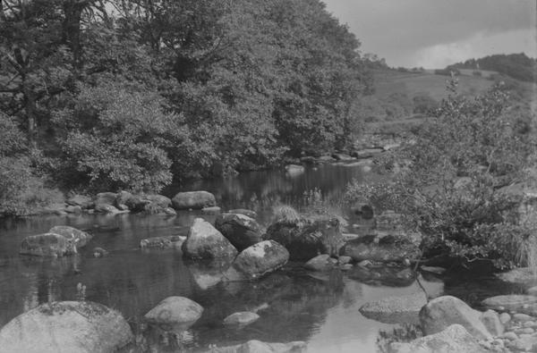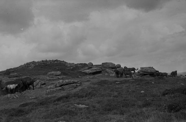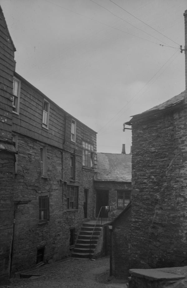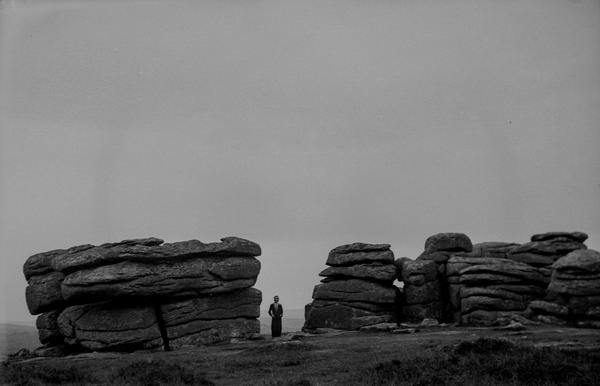 Peter Walker and Geoff Taylor from East Dorset Antiquarian Society were very kind to identify several other locations. The habour is at St. Ives. The rock formations in this photograph is Combestone Tor in Dartmoor. There are other images of nearby tors. The picturesque ruins are houses built into the remains of Bury St Edmunds Abbey. The headstones disappered since this shot was taken and the graveyard was turned into a lovely lawn. Peter also noted that Boot's Branch 395 is currently in Liskeard, Cornwall.