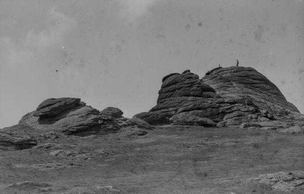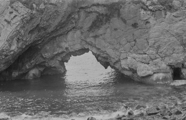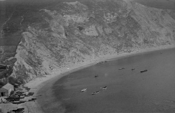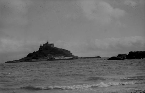 Some locations on the shots are easily recognisable. One of the images features Osmington White Horse in Dorset, the figure of King George III that was cut in limestone in 1808. The arch is probably the Stair Hole near Lulworth in Dorset. The photograph of the ship appears to be taken at Lulworth Cove. There is another picture made from the same location. St Michael's Mount in Cornwall did not come out very well on the picture but is still identifiable.