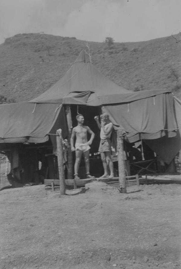 These eight 6.5x11 cm frames most likely come from the same roll of film that appears to be shot in a military camp.