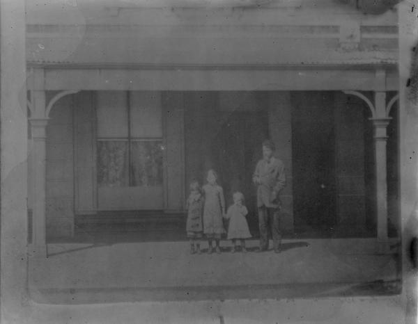 There are two photographs of a couple taken in the backyard of a suburban house. This must be Ada and P. Wilson mentioned in the notes. A photo of Jean with a toy pram is taken from the same spot. So this young lady must be Jean, and the boy next to her on this photograph would be Ronald. The kids also appear on another image Jean wearing her best dress and Ronald trying to sit still in a folding chair.