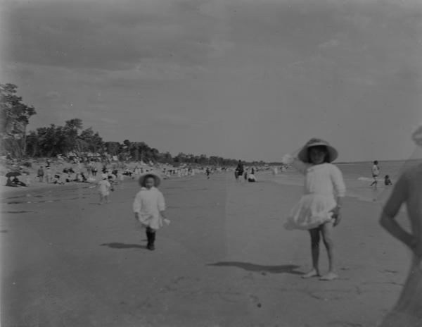 The beach scene is most likely this photograph which unfortunately is slightly out of focus. The Steam Ship Kyarra is seen on the film negative. This luxury liner was built in 1903, converted into hospital ship in 1914, and then into a troop transport in 1915. On 26 May 1918 SS Kyarra was sunk by German Submarine UB-57.