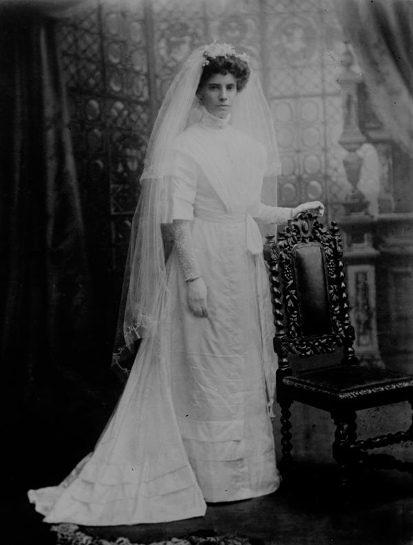 The bridal portrait is no doubt the work of a professional photographer. It is a classic example of "the technique of bygone days". Hugo van Wadenoyen, a brilliant British photographer and author, wrote the following about the early photographic processes in his book Photographing People: Ways to New Portraiture published in 1948: