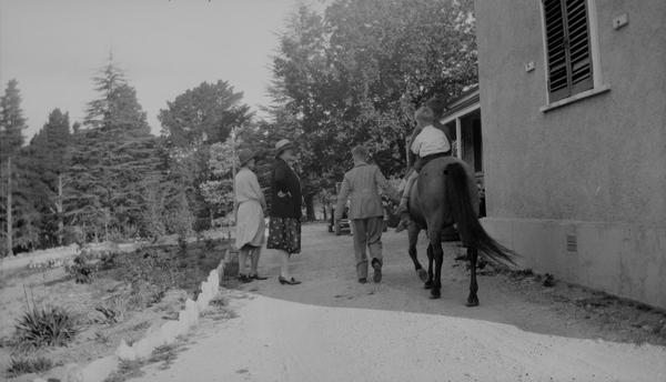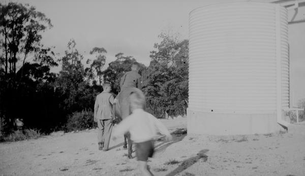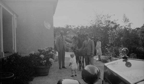 This envelope contained 6 negatives likely from the same roll of 116 or 616 type film. The handwriting in pencil is hard to read. The first word might be Wildash a family name (and also a toponym in Queensland). So the first line could be "Wildash + children". Is it Mr. Wildash posing with the children and a horse? There are two photographs of older boys playing golf. Lance and John?