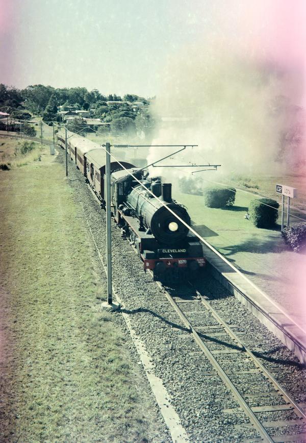 This photograph was shot from the footbridge at Lota railway station on the Cleveland line. The last image must have been taken at Roma Street railway station in Brisbane. "Caboolture centenary" might mean the centenary of Caboolture railway station which opened in June 1889.
