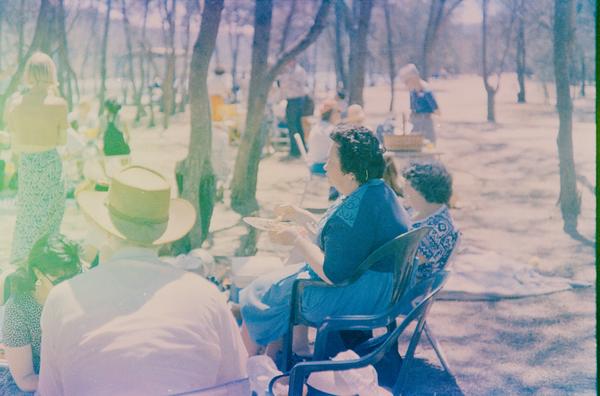 Many frames in this 24 exposure roll are out of focus. There is heavy green fog, and the dyes are degraded. There is practically no magenta dye left resulting in almost complete absence of green colour in the images. Despite this and some lack of experience on the side of photographer there is something attractive in the weird but subdued palette of these images.
