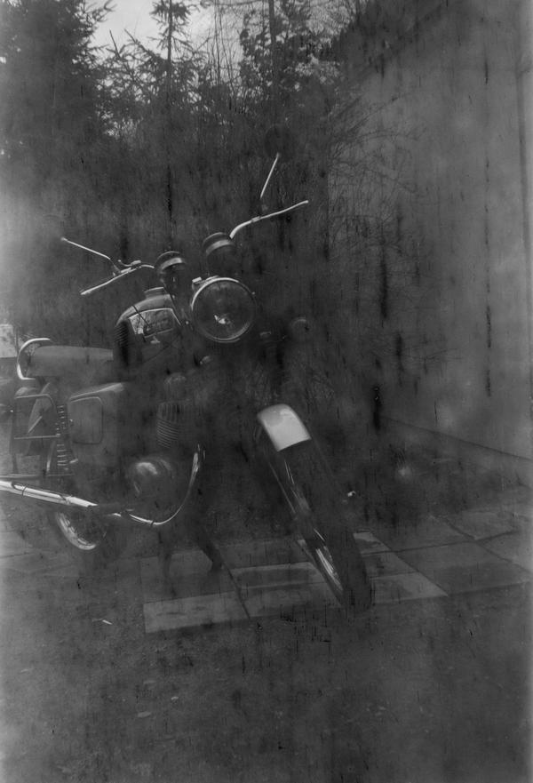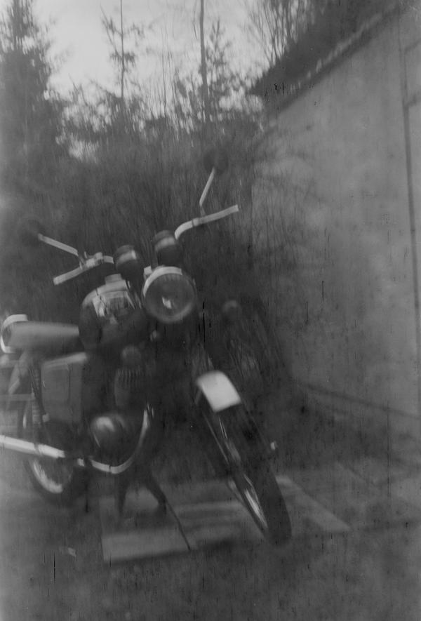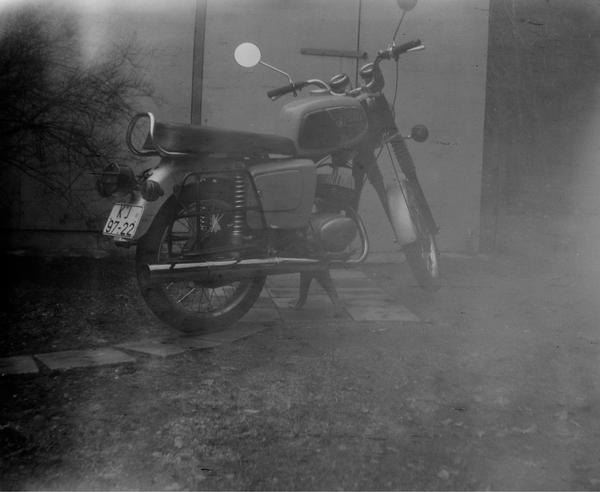 The roll was developed in HC-110 dilution E for 12 minutes at 20 °C. The motorcycle in the photos appears to be MZ model TS 125 or TS 150. The bike has East German registration plate and the young man in the last photo must be its proud owner.