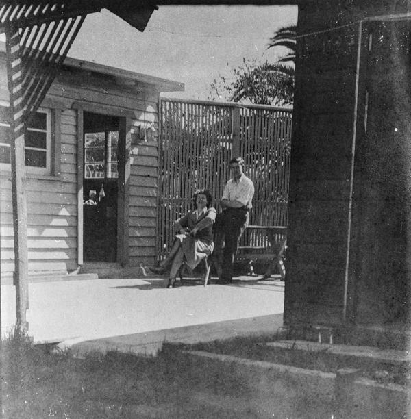 The shots were taken from the same spot and include quite a bit of architecture. Was this intentional? Is it possible that the people on the photographs had just bought the house and wanted it to appear in the images? Or maybe the photographer was unfamiliar with the camera and put the subjects well in the centre of the frame as a precaution. The images are somewhat soft and it is not clear if this was a focusing error, an unsharp lens on a simple camera or natural degradation of the emulsion during 6 or 7 decades of storage.