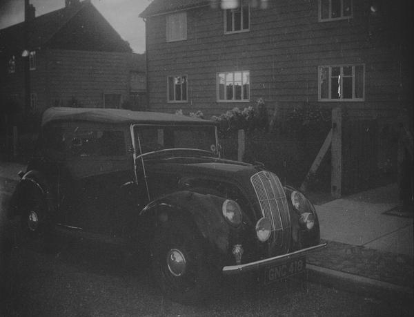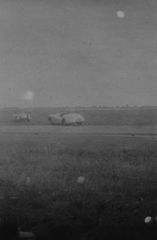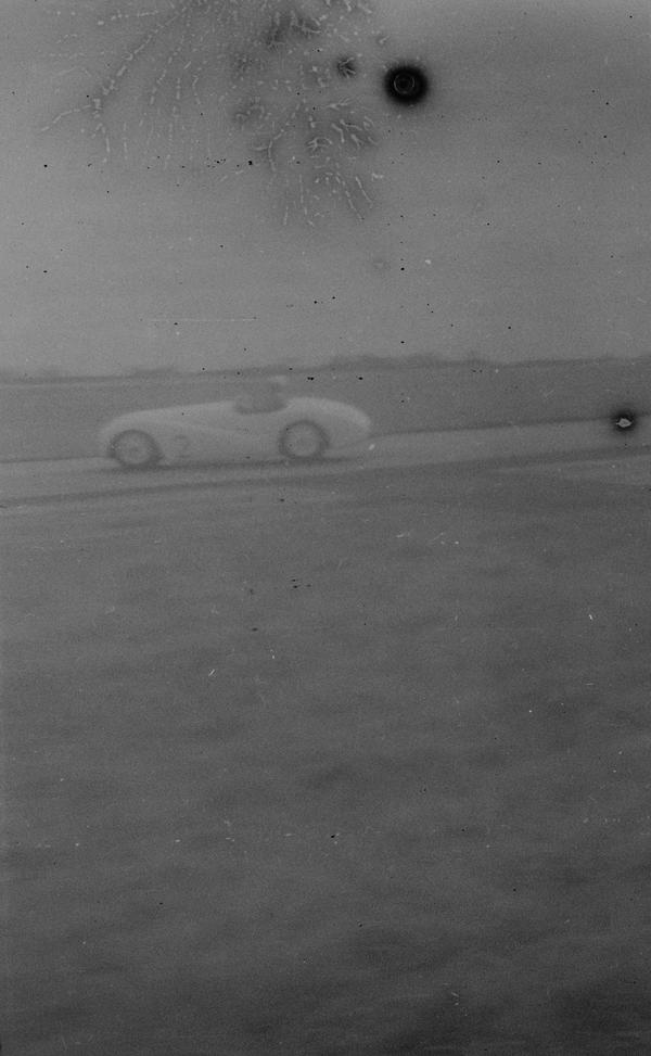 Cars make the main subjects on this roll. Four images are from what appears a race in open-cockpit roadsters, the type that were popular in 1950s and 1960s when they competed in Le Mans. The first image is of a small car parked on a street. The registration number is GNC 418. This numbering scheme was in use in Great Britain from 1932 to 1963.