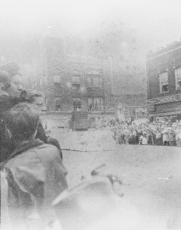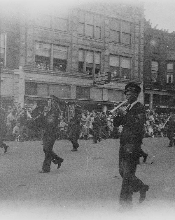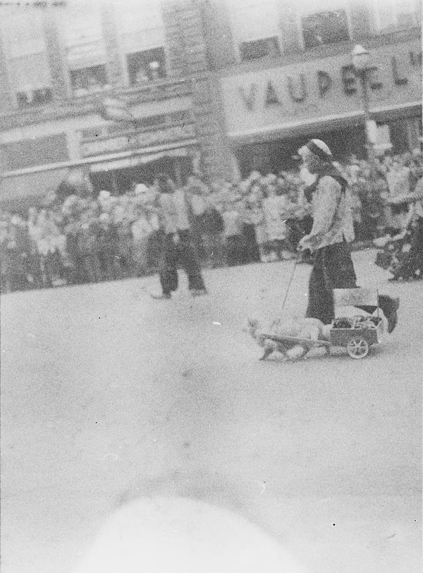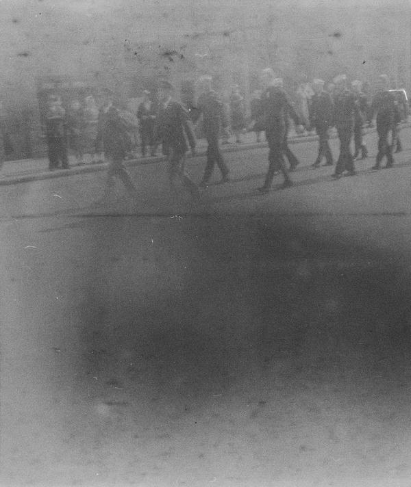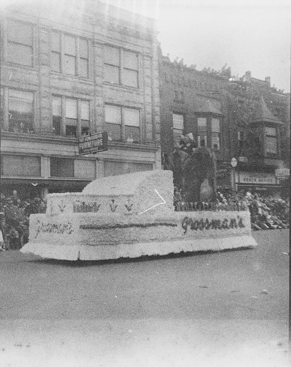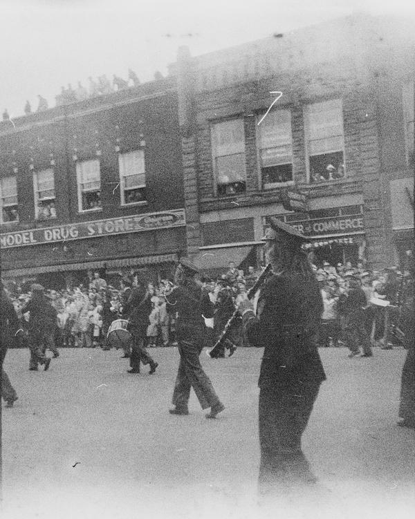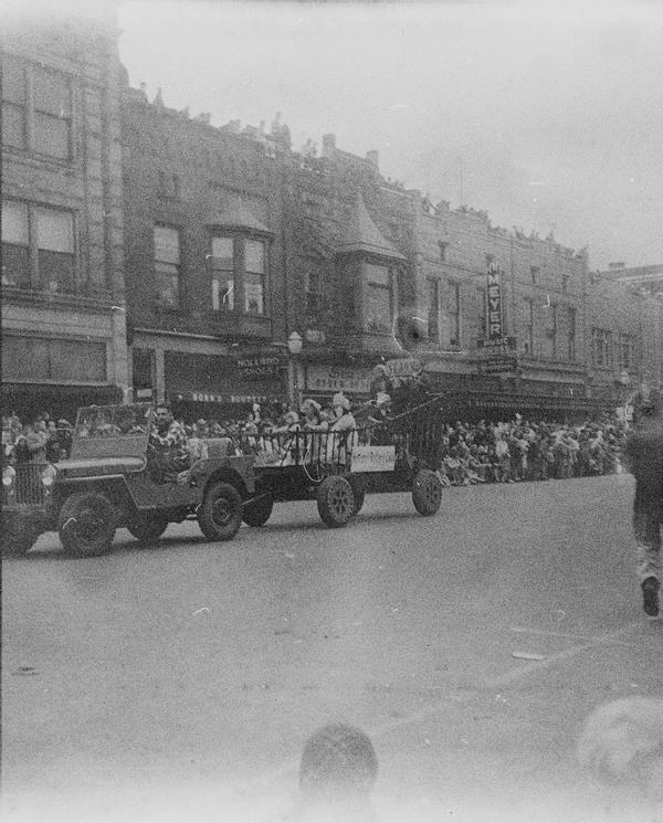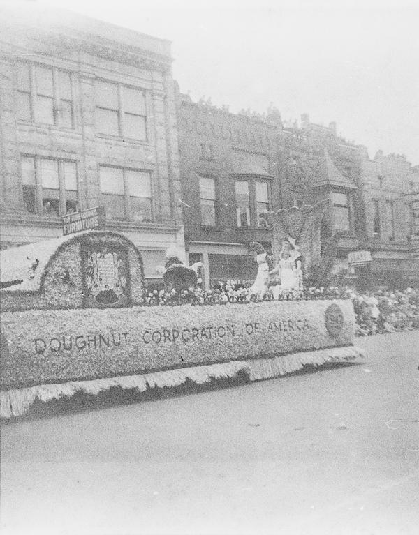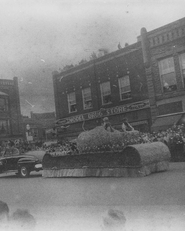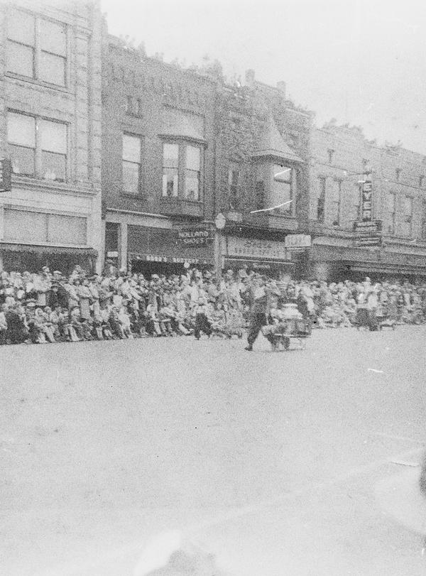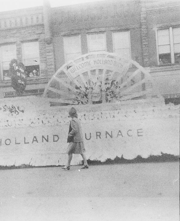The whole roll was shot from one position. With bit of research the location and the event were identified. This was Tulip Time Festival held annually in Holland, Michigan, USA since 1929. There's a shop sign "Holland Shoes", one of the floats has "Holland Furnace" on its side and "Welcome Holland Mich." above it. "Meyer Music" is a business in Michigan that was running for decades and still has a shop in Holland. Hope College was first opened in Holland in 1851. The date 1847 on the float must refer to the time Holland community was settled. Unfortunately, the other date is not easy to read, but it could be 1957. Is it the year the photograph was taken?
