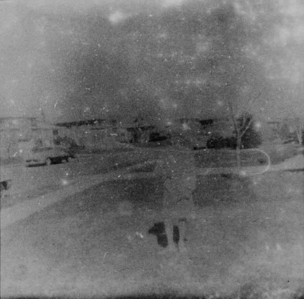 Here we have classic family snapshots. Maybe someone was testing a new camera and just came out to their front yard to take some snapshots of the kids using the family car as a background. There is a stricking contrast between the condition of the film and the subject matter of these images. Everything was new when the pictures were taken: new suburb, new homes, shiny new cars, young trees on the front yards and small kids. There is also something disturbing in the way the figures seem to evaporate from the images.