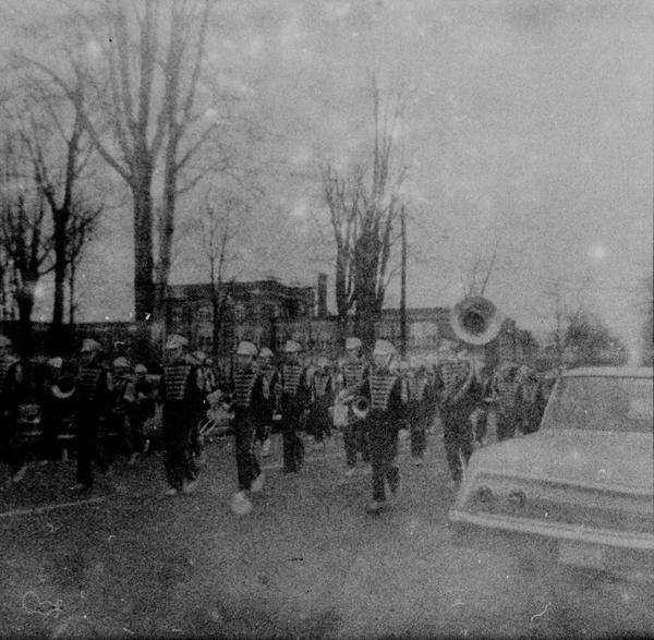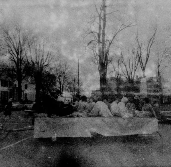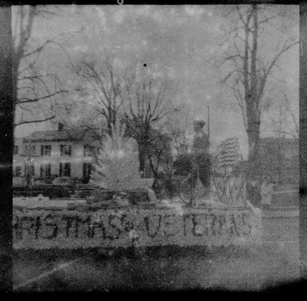 The roll was shot during a parade in a small American town. We see two veterans, one in a wheelchair, and one on crutches next to a Christmas tree on one of the floats with a "Christmas (for) Veterans" banner. Korean War would have finished years ago by 1963 so this must be Vietnam War veterans. Was this Veterans Day parade which is held on November 11?